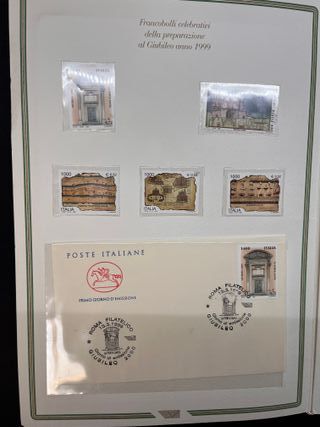Cartellina Filatelia - Giubileo del 2000 delle Poste Italiane. - Copertina con immagine di Piazza San Pietro. - Include francobolli commemorativi. - Anno di emissione: 1999.