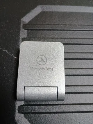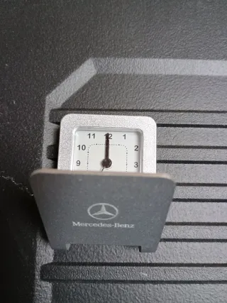 Mini orologio da tavolo Mercedes-Benz, un pezzo da collezione. - Design elegante in metallo argentato. - Logo Mercedes-Benz inciso.