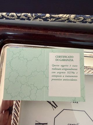 Elegante orologio da tavolo con cornice in Argento 925 e dettagli in legno scuro. Il meccanismo dell'orologio necessita di essere sostituito. - Cornice in Argento 925. - Dettagli in legno scuro lucido. - Quadrante con numeri romani.