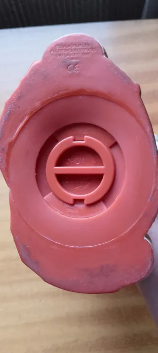 Porta monete a forma di ippopotamo di colore rosso. Realizzato in PVC, ha un design divertente e accattivante. Apertura con tappo nella parte inferiore.