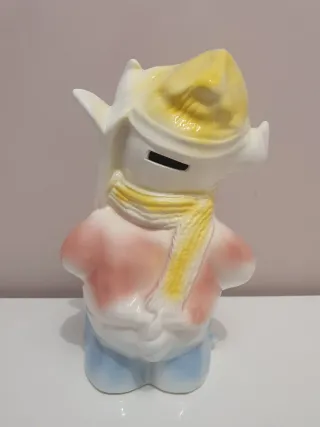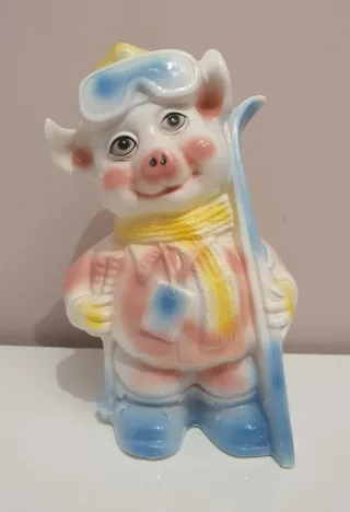 Porta monete in ceramica con forma di maialino sciatore, con sci e bastoncini. In buone condizioni generali, presenta una piccola imperfezione alla base degli sci (vedi ultima foto). Caratteristiche: - Altezza: 32 cm. - Larghezza (zona più larga): 20 cm. Per qualsiasi domanda, non esitare a contattarci. Tag: Neve, Sci, Bastoni, Sciarpa, Occhiali, Forfait, Inverno, Vintage, Retro, Collezione, Collezionista.