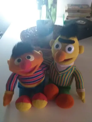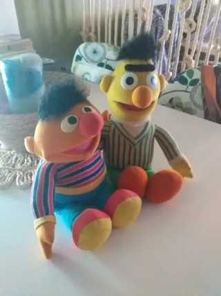 Set di pupazzi vintage di Bert e Ernie, personaggi iconici di Plaza Sésamo. Perfetto per collezionisti o per rivivere la nostalgia. Caratteristiche: pupazzi di peluche, vestiti a righe.