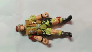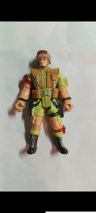 Action figure di un soldato con dettagli militari. - Indossa un elmetto e un'uniforme mimetica. - Dotato di accessori come fondine e tasche. - Braccia e gambe snodabili.