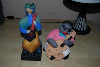 Deliziose statuette in ceramica dipinta a mano raffigurante un musicista jazz al contrabbasso. Pezzi unici per gli amanti della musica. - Materiale: ceramica. - Finitura: dipinta a mano. - Tema: musicista jazz.