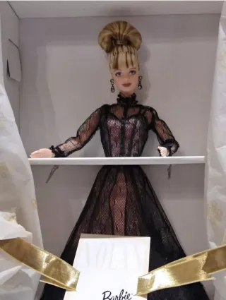 Barbie Nolan Miller, mai uscita dalla scatola (NRFB). - Abito lungo in pizzo nero. - Dettagli preziosi. - Scatola originale inclusa.