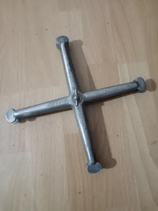 COLLEZIONE DECORAZIONE. Vecchio strumento per pressare racchette da tennis. Fabbricato in metallo. Design a forma di croce con quattro bracci. Marca Zephyr incisa sui bracci.