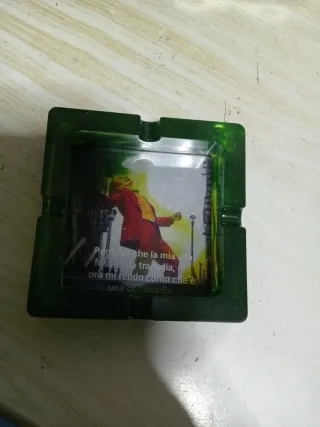 Posacenere in resina verde con immagine del Joker. - Design con citazione del Joker. - Materiale: resina.