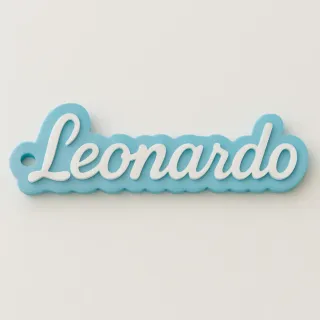 Portachiavi personalizzato con nome in rilievo 3D. Un'idea regalo unica e originale. Stampato in 3D - Realizzato in materiale resistente. - Design moderno e accattivante. - Colore azzurro con scritte bianche.