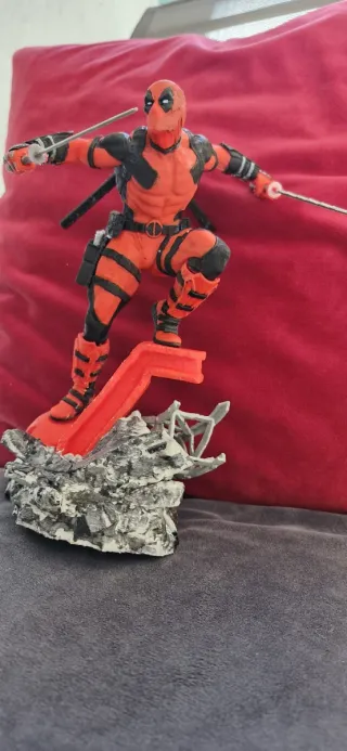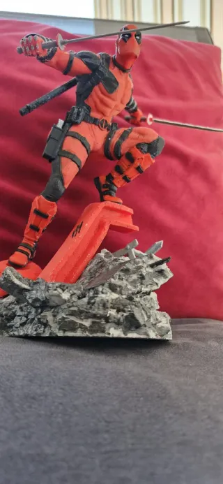 Statuetta di Deadpool realizzata in 3D, perfetta per gli appassionati del personaggio. - Design dettagliato del personaggio. - Base rocciosa inclusa.