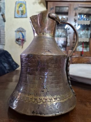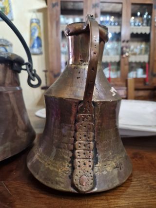 Set paiolo e brocca in rame antico lavorato. Possibilità di vendita separati, 50 € solo la caraffa e 100 € solo il paiolo