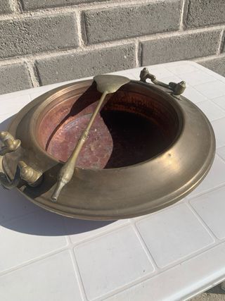 Bellissimo paiolo antico in rame, un pezzo da collezione che aggiunge un tocco di storia alla tua casa. - Realizzato in rame. - Completo di coperchio.