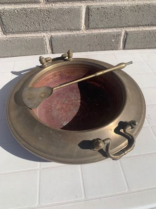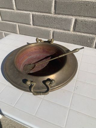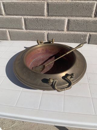 Bellissimo braciere vintage in rame, perfetto per collezionisti. - Piccole dimensioni, ideale per spazi ristretti. - Realizzato in rame e ottone. - Presenta un design antico e dettagli decorativi.