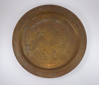 Antico set servizio da caffe arabo in ottone intagliato. Set da 9 pezzi. Compresi: - 1 vassoio - 1 caffettiera - 1 zuccheriera - 6 tazzine