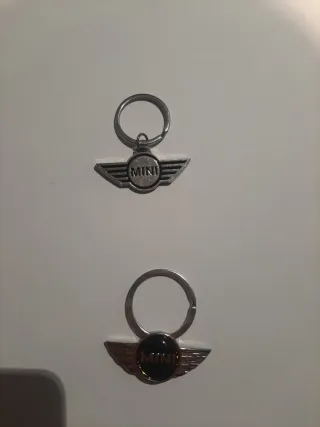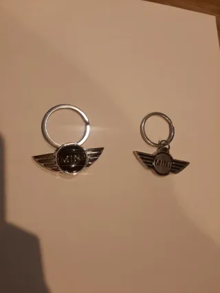Set di due portachiavi con logo MINI. - Uno con logo MINI in metallo. - Uno con logo MINI su sfondo nero lucido.