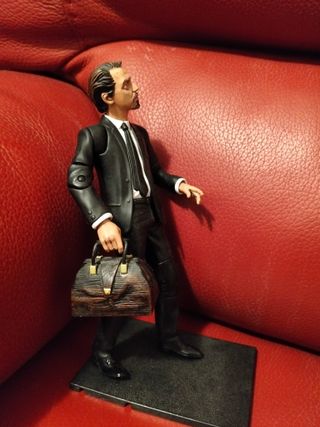 Action figure di Mr. White (interpretato da Harvey Keitel) dal film Le iene (Reservoir Dogs), prodotta da Mezco nel 2001. Altezza 17 cm. - Dettagli curati. - Include base espositiva. - Due pistole incluse.