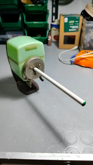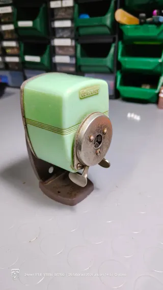 Un classico temperamatite vintage con il nome Sovereign inciso. - Design retrò. - Corpo in plastica bachelite verde. - Base in metallo scuro.