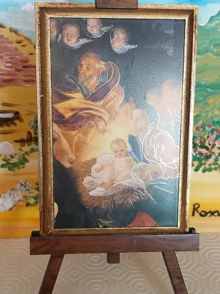 Bellissimo quadretto raffigurante la Natività. Misura lunghezza cm 13 Misura altezza cm 23 - Soggetto: Sacra Famiglia. - Cornice dorata inclusa.
