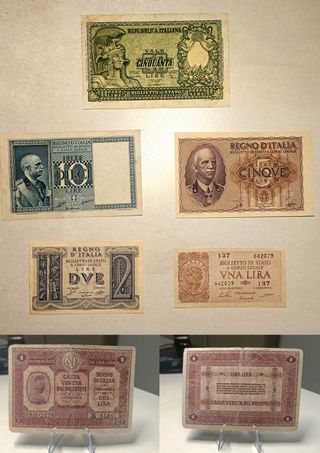 Banconote 10 Lire e 5 Lire Regno d'Italia