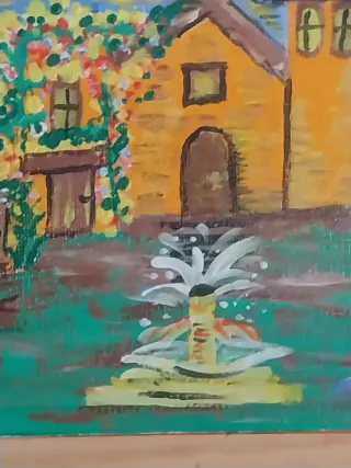 Opera dell'artista Amedeo Rosalia. Misura altezza cm 20 Misura lunghezza cm16 - Dipinto su tela. - Raffigurante una chiesa con fontana.
