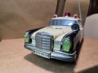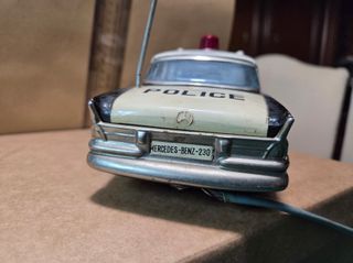 Modellino in latta di un'auto della polizia Mercedes Benz 230. Misure 9 x 12 x 27 cm