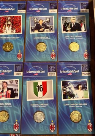 Collezione di 11 medaglie commemorative del Milan, edite da La Gazzetta dello Sport. - Medaglie nuove.
