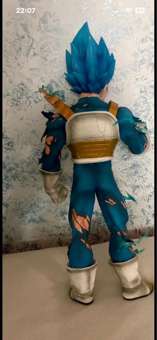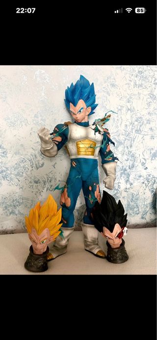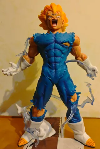 Action figure di Vegeta da Dragonball. - Dettagli fedeli al personaggio. - Include teste intercambiabili. - Base di supporto inclusa. 45:47 cm la statua tende ad inclinarsi ma appoggiata resta in piedi ho creando hna base