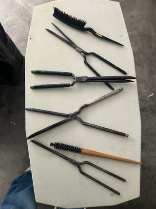 Arricciacapelli Antichi Vintage Ferro Parrucchiere. Questi sono antichi ferri arricciacapelli vintage del primo Novecento. Venivano riscaldati manualmente (spesso sul fuoco o su una stufa) prima dell'uso. Erano utilizzati per creare ricci o onde. Il set include anche spazzole e pettini per la messa in piega. Così come nelle foto descrittive da ripulire eventuali segni di usura .