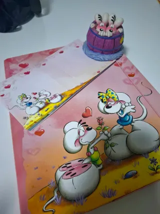 Delizioso set da collezione Diddl, ideale per collezionisti e amanti dello storico mondo Diddl 🐭💖 Il set comprende: 📂 Cartellina originale Diddl ✉️ Set di carta da lettere e buste Diddl 👉 Per ogni tipologia grafica sono presenti 5 fogli di carta da lettere + 4 buste abbinate, tutte nuove e mai utilizzate 🧸 Statuetta da collezione in ceramica raffigurante tre simpatici topolini Diddl che emergono da una botte ✨ Tutto il materiale è nuovo, mai usato e ben conservato. Un insieme dolce e nostalgico, perfetto sia come decorazione che per arricchire una collezione Diddl 🖼️🌸 Dettagli statuetta: 🏺 Materiale: ceramica ✅ Condizioni: o