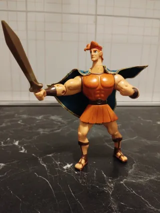 Action figure di Hercules, personaggio Disney prodotto da Mattel nel 1997. - Dettagli fedeli al personaggio. - Include mantello blu con bordi dorati in stoffa - Spada dorata inclusa.