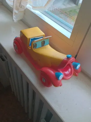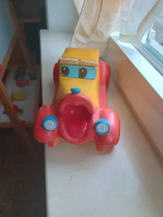 Auto d'epoca in plastica, design Studio Bozzetto. - Realizzato in Italia da Fabianplastica. - Colori vivaci giallo e rosso. - Dettagli simpatici come gli occhi e i fari.