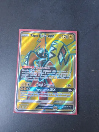 Carta Pokémon Tapu Koko GX in versione Full Art Ultra Rara. - Pokémon: Tapu Koko GX - Tipo: Base - PS: 170 - Abilità: Aerotraccia - Attacco: Artigli Supremi / Taputuono GX