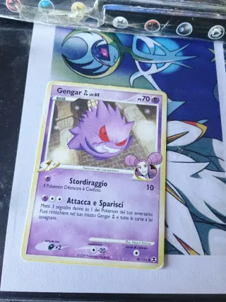 Carta Pokémon Base di Gengar, livello 65. - Attacco: Attacca e Sparisci - Debolezza: x2 - Resistenza: -20 - Illustratore: Naoyo Kimura - Codice carta: 40/111