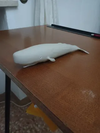 Modellino di capodoglio in resina di colore bianco. - Dettagli curati. - Base stabile per esposizione.