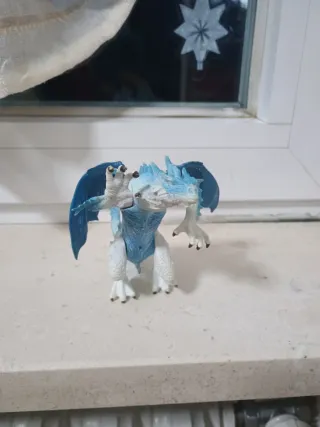 Un simpatico drago giocattolo di colore blu e bianco. - Dettagli alari e squame. - Zampe artigliate.