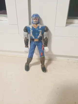 Action figure di un Power Ranger di colore blu. - Dettagli argentati sulle spalle e sugli avambracci. - Dettagli dorati sul petto e sulla cintura. - Pantaloni blu con dettagli rossi e verdi. - Stivali marroni scuro.