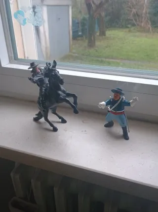 Set di personaggi Zorro Tornado e Sergente Garcia. Purtroppo si sono staccate le spade gionandoci. Per il resto è ottimo. - Personaggio Zorro su cavallo nero. - Personaggio Sergente Garcia in uniforme blu e rossa.