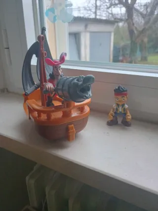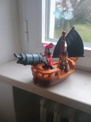 Set di personaggi e nave pirata. Manca il proiettile del cannone - Personaggi inclusi: Capitan Uncino e Jake il pirata. - Nave pirata con vele nere e cannone.
