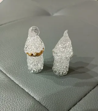 Deliziose casette in vetro di Murano, perfette per un tocco di eleganza. - Realizzate in vetro trasparente. - Design unico e artigianale. Una di esse ha la punta del tetto sbeccata, l'altra è perfetta.