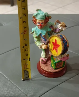Deliziosa statuina di un Clown, dipinta a mano con cura. - Realizzata in resina. - Dettagli colorati e vivaci. - Base decorativa in legno inclusa. In eccellente stato conservativo!