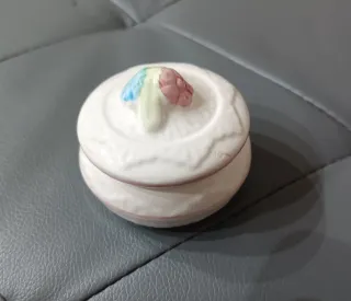 Delizioso cofanetto vintage in porcellana, perfetto per conservare piccoli oggetti. - Decorazione floreale sul coperchio. - Bordatura colorata. - Finitura lucida. In buono stato generale, segni del tempo visibili in foto.