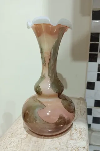Elegante vaso vintage in vetro opalino di Murano, con un design unico e colori sfumati. - Materiale: Vetro opalino. - Stile: Murano. - Finitura: Sfumata con toni caldi e naturali. In perfetto stato!