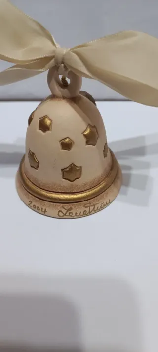 Bellissima campanella Thun del 2006, raffigurante un angelo. Perfetta per collezionisti o come decorazione. - Design con angelo in rilievo. - Dettagli dorati. - Nastrino in tessuto per appenderla.
