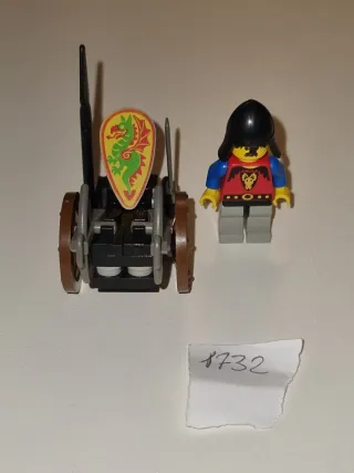 Set Lego Castello 1732 con carrozza e guerriero. - Carrozza con ruote e balestra. - Guerriero con scudo e lancia. - Elementi in plastica colorata.