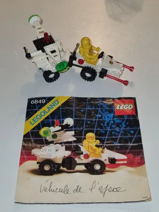 Set Lego 6849 Veicolo de l'espace della serie Legoland. - Veicolo spaziale bianco con astronauta giallo. - Include accessori come antenne e bracci. - Istruzioni originali incluse.