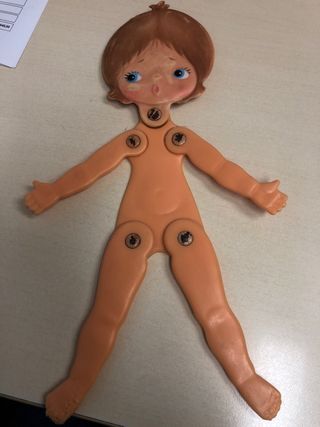 Bambola vintage pieghevole della marca Sebino, risalente agli anni '70. Un pezzo da collezione. usata e vissuta ma in buono stato. Modello Metti una bambola in tasca.