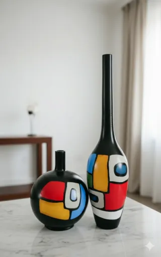 Coppia Vasi Design Modernariato-Stile Mondrian