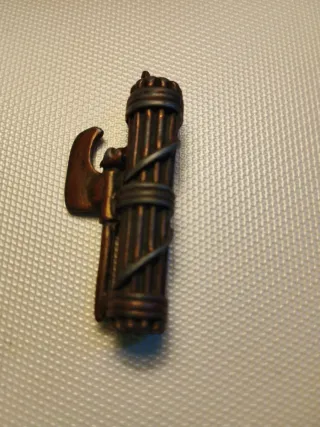 Simbolo antico che rappresenta il fascio littorio, con un'ascia. Può essere utilizzato come ciondolo Cm 4,5 - Materiale: metallo misto a rame - Colore: bronzo/rame