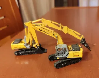Set composto da due veicoli da cantiere. - Un escavatore giallo New Holland. - Un dumper giallo Volvo A40D. - Dettagli realistici.