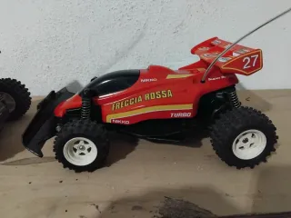 Radiocomandata Nikko Freccia Rossa Turbo Super Buggy. Un modello iconico per gli appassionati di auto telecomandate. - Colore rosso brillante con dettagli neri. - Design da Super Buggy con spoiler posteriore. - Pneumatici tassellati per una migliore aderenza.funziona bene.senza radiocomando. Solo auto..