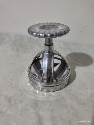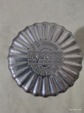 Pressa per hamburger Minipress Alberti in metallo, un pezzo vintage. - Materiale in metallo lucido. Oggetto da collezione ma funzionante. Altezza cm 12 circa, diametro cm 10 circa. Non ha rotture, crepe o ammaccature. Prezzo trattabile o proposta d'acquisto.